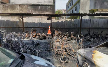 8月1日凌晨4点多,柳江金碧苑小区2号车库发生火灾,两辆电动自行车被烧得只剩空架,周围的墙壁也被熏黑。经了解得知,原来是充电时,其中一辆电动自行车的充电器起火,引燃了旁边的电动自行车。此次火灾发生后,暴露了小区消防隐患。
