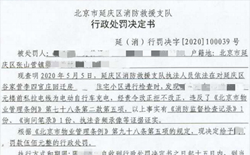 5月5日,延庆区消防救援支队执法人员依法对延庆区谷家营李四官庄回迁房住宅小区进行检查时,发现胡某某私拉电线为电动自行车充电,执法人员责令其改正。然而,胡某某拒不改正,执法人员随即告知该业主违法行为的事实,并处罚500元。这是《北京市物业管理条例》实施后,延庆区第一起因“飞线充电”,且拒不改正被处罚的案例。