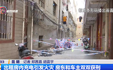 昆明官渡区周某违规为电动自行车充电引发火灾,造成3死1伤,被该区人民法院以电动自行车车主周某犯失火罪,判处其有期徒刑2年6个月;房东车某犯失火罪,判处有期徒刑2年4个月,缓刑3年。