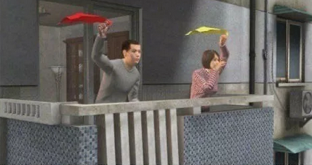 在白天,找色彩亮丽的衣服或者布条,从窗户里向外大幅度晃动,引人注意。